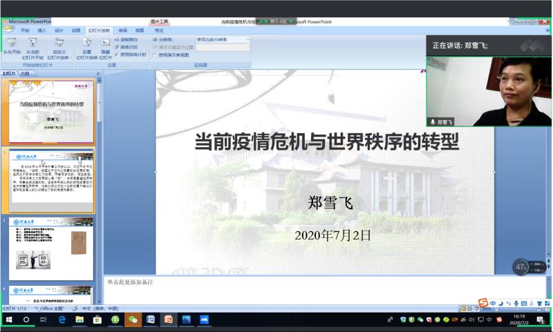 政治系郑雪飞教授以 “当前疫情危机与世界秩序重构”为主题开讲。spbo即时比分live