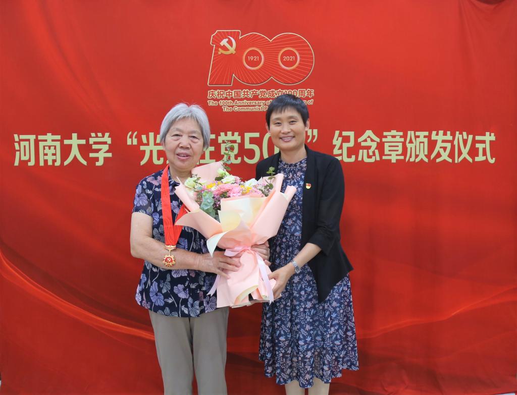 学科建设和发展所做的贡献表示感谢。她表示,老党员的奋斗历程和光辉事迹给大家树立了榜样,是我们学习党史、用好党史的宝贵资源和财富。她鼓励青年党员向老党员学习,学习他们的崇高品格和奉献精神,爱党爱国,实学实干,在新时代新征程中书写河大人与党同心,勇担使命新篇章。