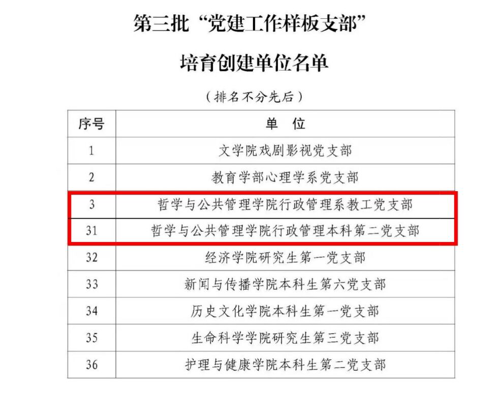 行政管理系教工党支部和行政管理本科第二党支部获批创建党建工作样板支部。