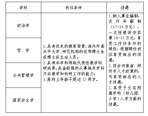 在哲学、政治学、公共管理学、国家安全学及相近学科设有高层次人才岗位,常年面向海内外招聘各类高层次人才,一经聘用,待遇从优。