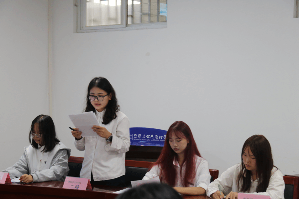 行政管理专业“全球治理与地方治理(2024年度)”辩论联赛第八轮比赛于院楼411举办。2021级朱佳凝、张润宇、2022级聂菁担任评委。
