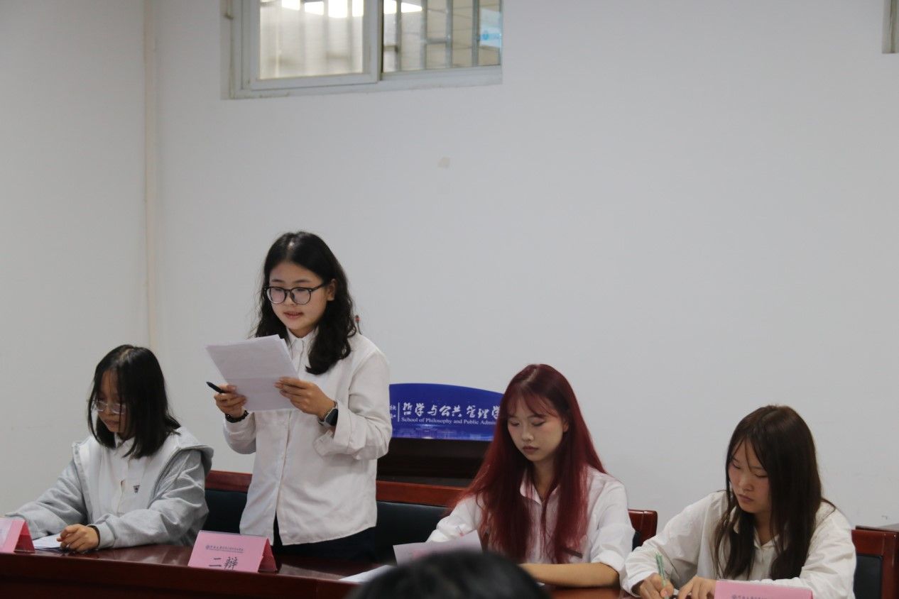 行政管理专业“全球治理与地方治理(2024年度)”辩论联赛第七轮比赛于院楼411举办,研究生任非凡、2021级胡迎飞、陈宛玥、2023级蔡云飞担任学生评委,部分2022级,2023级行政管理专业学生到场观赛。
