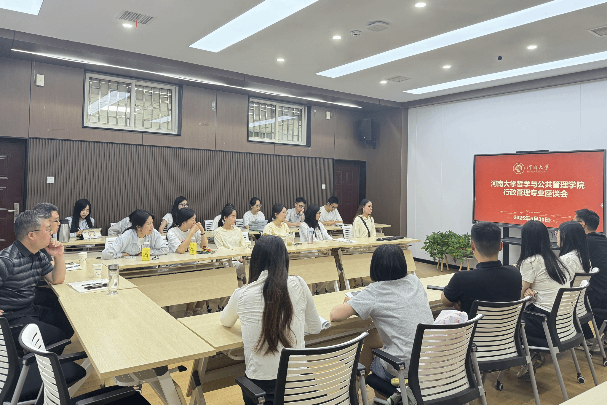 行政管理专业举办硕士研究生就业升学交流会,行政管理专业导师刘辉、元帅等教师,以及行政管理专业研究生共同参加,2025届四位研究生毕业生受邀分享。