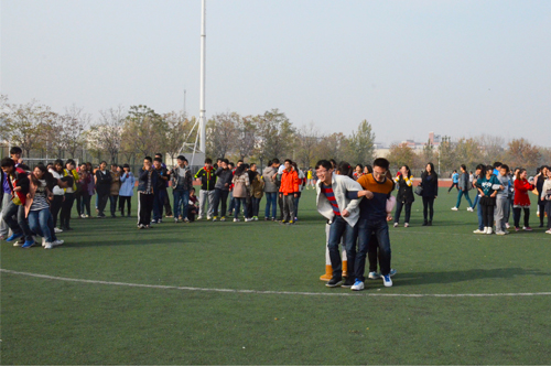 协办的“首届趣味运动联谊赛”在金明校区东操场举行。百余名2013级本科生参加了此项活动。
