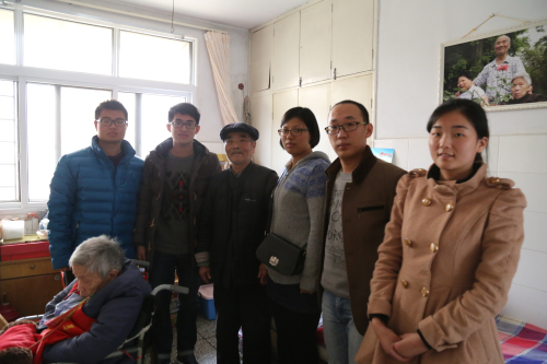 几名研究生代表和本科生代表一同来到开封市离退休职工爱心护理院看望黄魁吾教授,现已88岁高龄的黄教授见到学生们非常高兴,虽然嗓音已有些浑浊,但他仍然思维清晰,表达清楚简洁,井井有条的与同学们进行交谈。