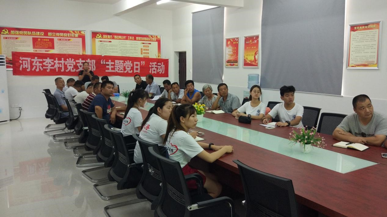 调研的第一站,他们来到了位于河南省漯河市后谢镇的河东李村。走进村中的大门,久违的家风乡情在这里随处可见,无论是路灯牌上村里的“好媳妇”、“好婆婆”宣传画,还是道路两旁的巨幅孝道墙绘,都在向团队成员们传递着来自于这个村庄家风乡情的脉搏。从村两委领导的口中,团队成员们了解到河东李村在先前的很长时间里都是一个小小的自然村,在近几年才成为独立的行政村,因此,河东李村的经济发展起步较晚,发展过程中也遇到了不少的阻力。村干部表示,下一步,村两委还将根据村里的实际情况,引进更加适宜的农业作物在村中进行推广种植,在提高村民收入的基础上形成一套有河东李特色的农业发展致富体系,带领村民共同提高生活水平走向富裕。虽然村民的普遍收入和生活水平不高,但长期以来,河东李村一直保持着先前优秀的家风乡情,备受周边村落的赞誉和好评。在河东李村的五天时间里,团队成员们陆续走访了村中包括村干部、“好媳妇”、“好婆婆”、乡贤、退休教师在内的多个群体,对河东李村的优秀家风乡情文化有了更加深入的认识和把握。调研过程中,团队成员参加了村党支部每月定期举行的主题党日活动,也加入了村中激情洋溢的广场舞;观看了文明乡风的巡演,也参加了“好媳妇”表彰大会,同时也与来村中考察的漯河市文明办主任和后谢镇党委书记热情交谈。认真观察、用心倾听,团队成员们用问卷、镜头和访谈记录勾勒出河东李村真实动人的家风乡情。在这里,他们对这个村庄饱含着深情与敬意,这个村庄也对团队成员回馈着这里独有的热情与温暖。