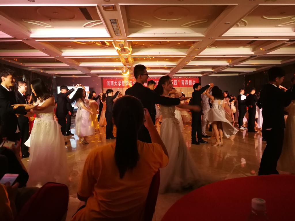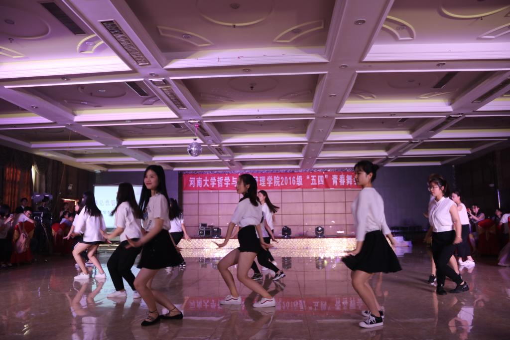 爵士舞《花young》拉开了舞会的序幕,明快的节奏以及丰富的表现力赢得台下阵阵掌声;伴随着吉他声响起,小合唱《five hundred miles》如一汪清泉,沁人心脾;集体舞《爱的华尔兹》优雅中不乏浪漫,使得现场气氛瞬间升温;韩舞《bboom bboom》以其节奏强烈、动感十足的抖音合集推动舞会渐入高潮;活力劲爆的街舞表演更是让人目不暇给,眼花缭乱。热烈的掌声,响亮的哨声,舞动的旋律,都烘托出青春的张扬靓丽。舞会形式多种多样,期间还穿插合唱、小品、相声、诗朗诵等表演,从不同层面诠释了青春,梦想和未来的真谛。