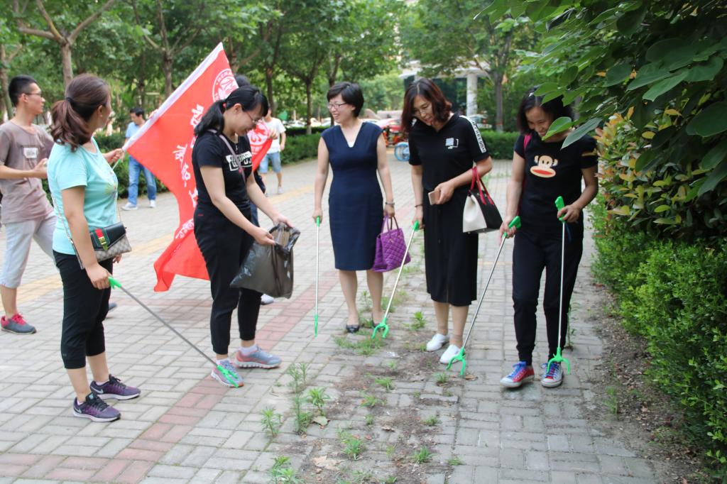 组织教职工志愿服务队在河南大学金明校区卫生清洁区开展环保志愿活动。