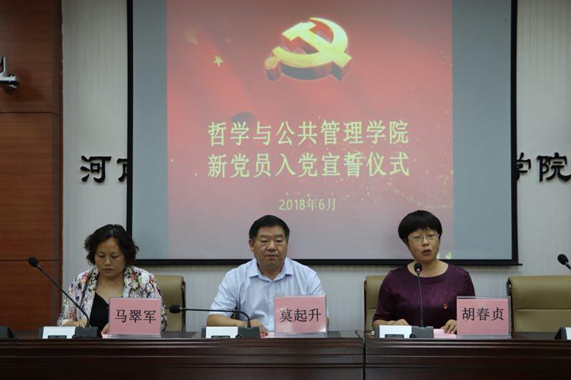 党委书记莫起升致辞。他指出学生党员要发挥先锋模范作用,要发扬党的优良传统和作风,要立足本职,放眼未来;要在学习上、工作上做出表率,将理论知识付诸共产主义伟大实践。最后提出三点希望,要求大家“要拥抱新时代”、“要践行新思想”、“要实现新作为”。