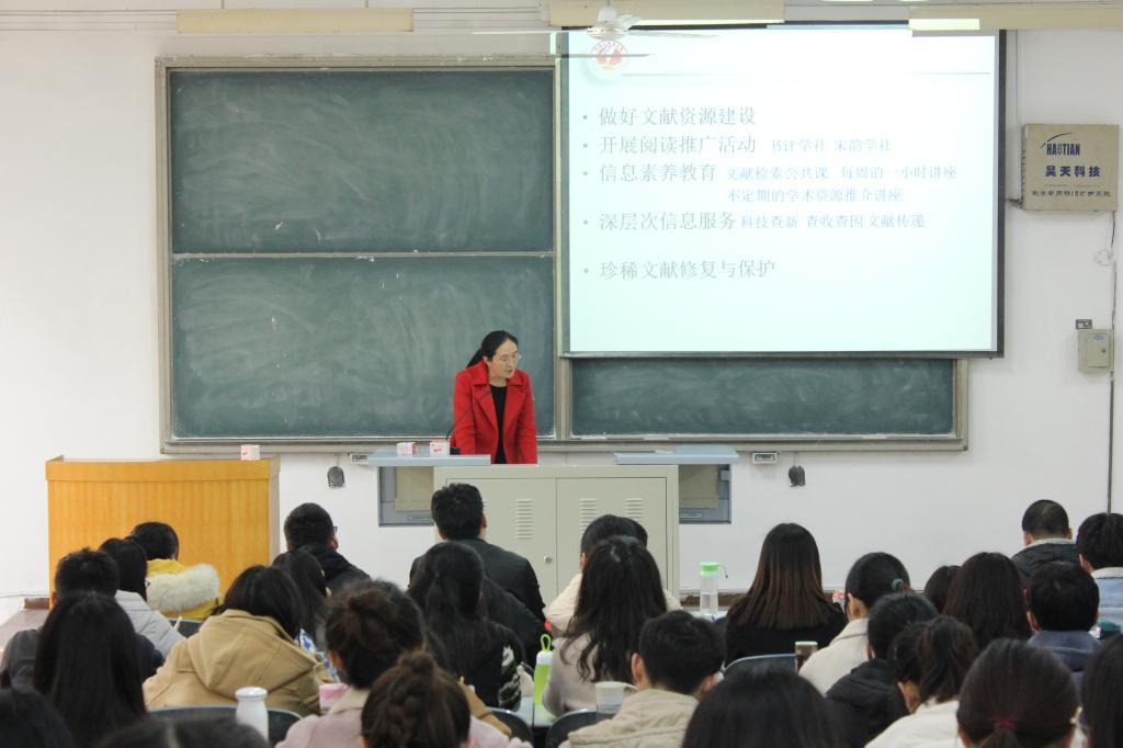 11月29日下午,学校图书馆韦爱芬老师以“学术信息资源获取的方法与途径”为主题,为spbo即时比分live