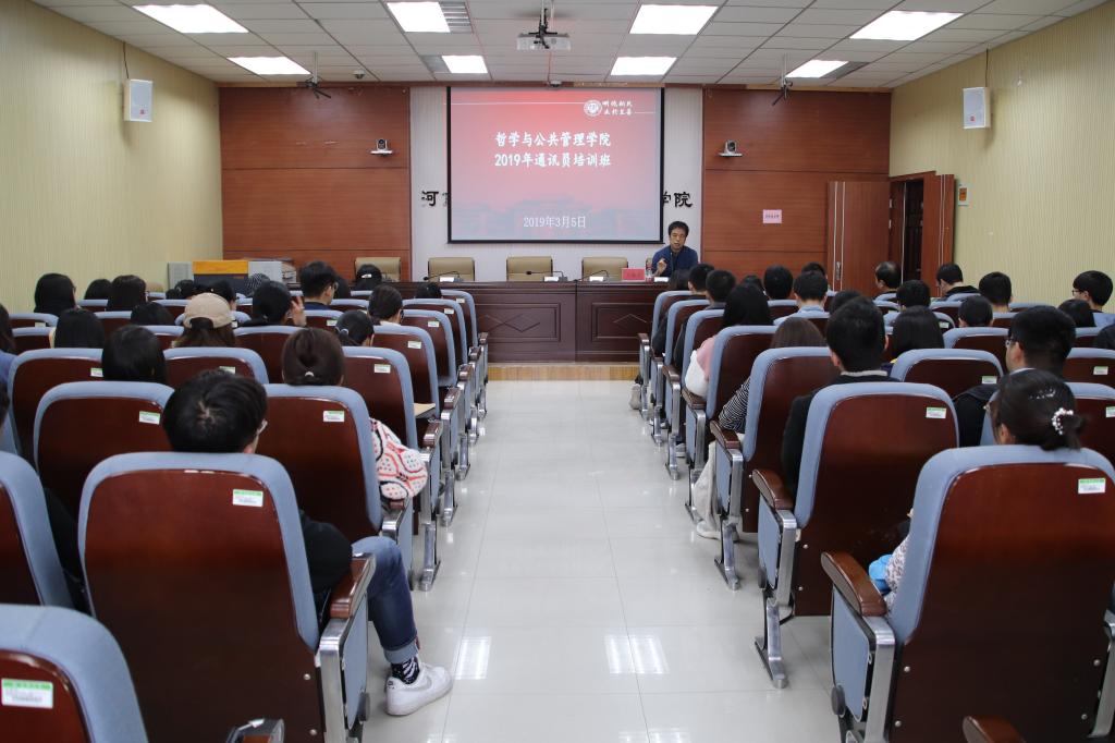 三楼第一会议室举办2019年通讯员培训班。院党委领导、各科室负责人、各年级辅导员及师生代表参加。