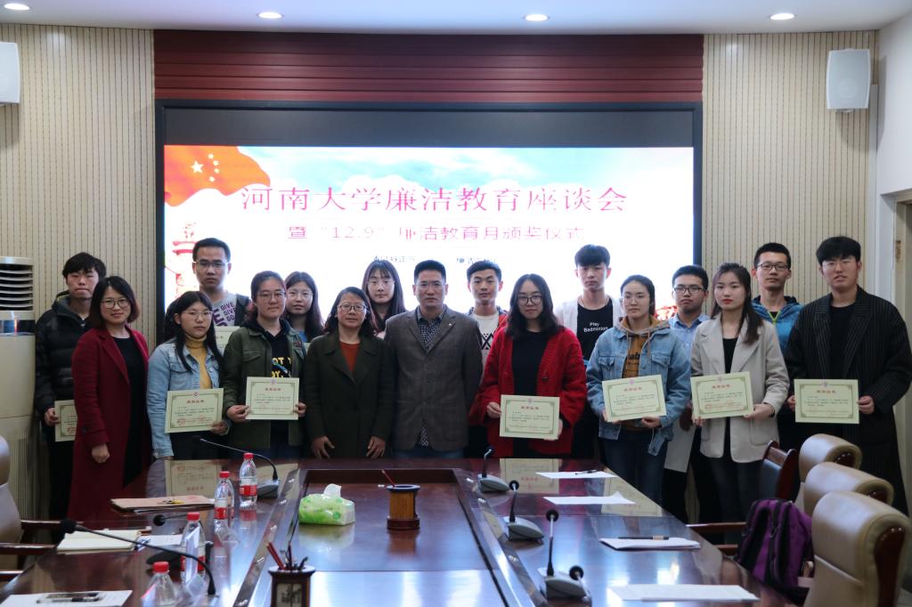 “12·9”廉洁教育月由我校明德廉风学社承办,包括廉洁知识竞赛、廉洁作品创作、廉洁案例分析、廉洁三行诗、书法、绘画、征文等一系列活动,主题突出,形式多样,全校师生积极参与。最终,孙梦菲、孙逍等6人荣获一等奖;汤阳等4人获得二等奖;李笑雨等3人获得三等奖。座谈会在颁奖仪式中落下帷幕。