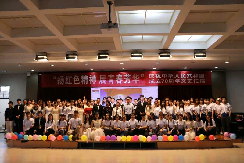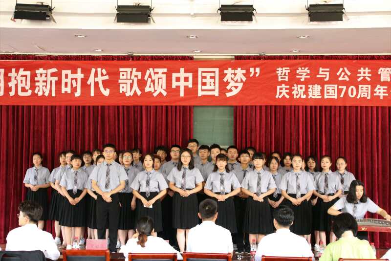 2017级“扬红色精神,展青春芳华”庆祝中华人民共和国成立70周年文艺汇演在优美的集体舞中拉开序幕。磅礴气势的诗歌朗诵《中国人,不跪的人》、《五四的火炬》、《盛世中国》展现了中国民族站起来、富起来到强起来的豪迈。话剧《钥匙》情节一波三折,透着深意。历史时装秀,经典与现代结合,每一组走秀,都代表着一个时代的印记,引人深思。唐圣烽激情演绎《红旗飘飘》表达了他对祖国母亲70岁生日的深深祝福。三句半《大学生活》,幽默风趣不失创新活力,既是对大学生活的生动总结,又表现出青年人敢于追梦、敢于圆梦的执着精神。合唱《哲学有点甜》、《和你一样》、《勇气》既是留恋过去的美好,也是赋予现在的勇气,更是期待未来的光芒。