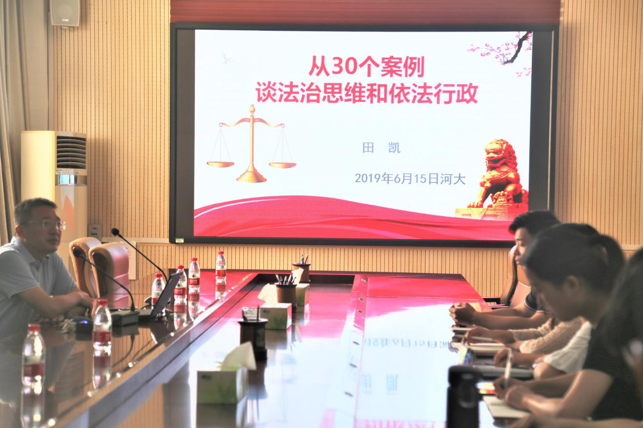 讲座上,田凯结合极具特色的求学经历和工作经验,通过多个生动形象的案例向大家汇报了其研究历程和内容。他从具体案例出发,结合自身的检察工作,用行政法的视角,对行政公欲讼诉制度进行了深入的应用研究,取得了广泛的成果。并向政治学师生提出了独特的视角和要求。他表示“宪法是政治的法律化”、“学政治要有管理学和法制的概念”,随后他通过“依法治国的发展脉络”、“应当强化的四个法治思维”、“依法行政的四个基本原则”和“依法行政的四个基本问题”四个部分,详细而又深刻地介绍了依法行政的发展历程及内容。田教授语言简练,言辞精准到位,从行政法的角度重新审视了政治学专业。会后张胜利对讲座内容进行了凝练总结。与会师生在开阔视角的同时有了较大的启发,纷纷表示受益良多,希望能在以后的学习研究中更加精进实效。
