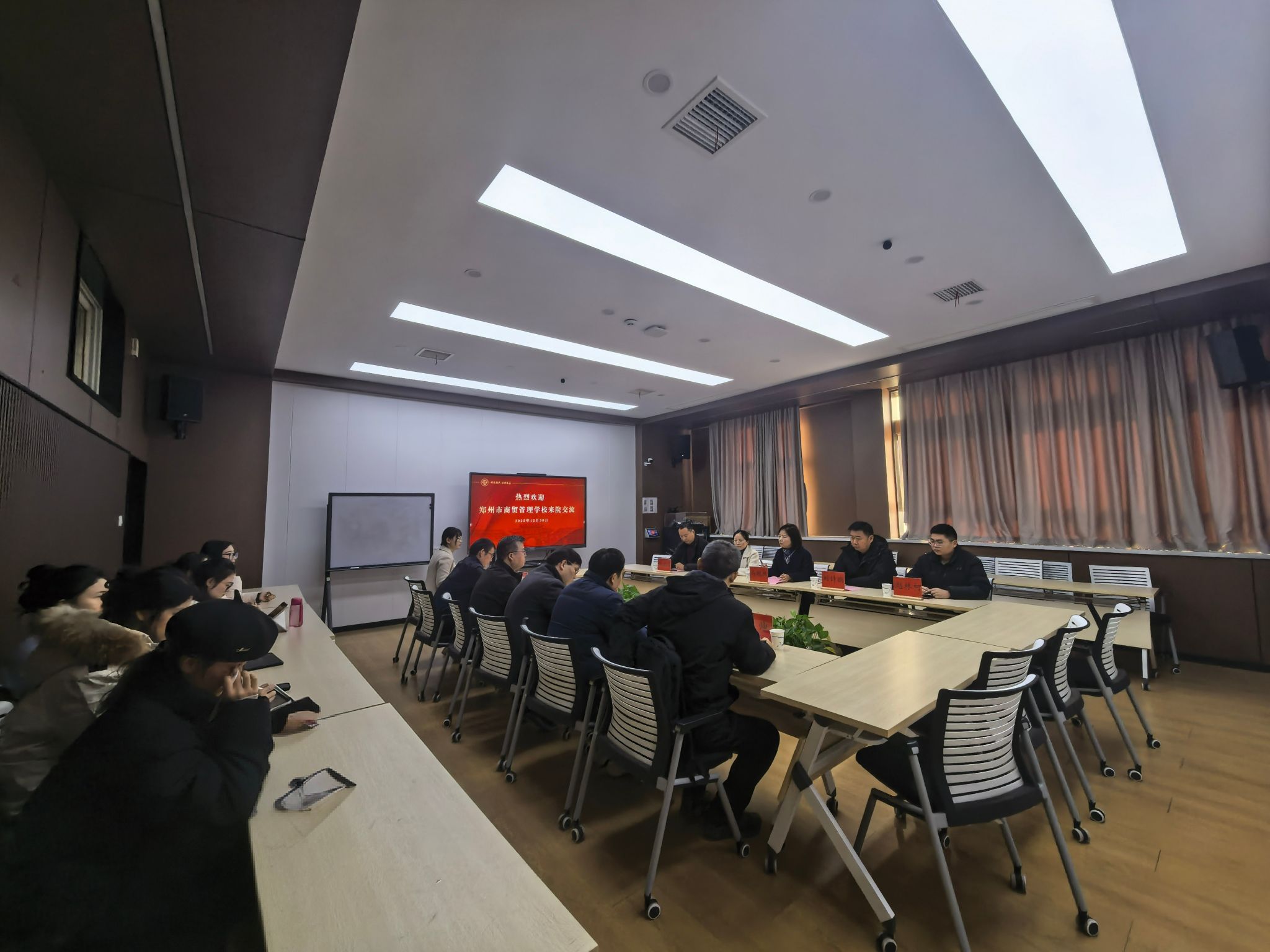 12月30日上午,郑州市商贸管理学校党委书记马越雁一行来spbo即时比分live 进行座谈交流。spbo即时比分live 副院长田丰韶、刘辉,政治系党支部书记别红暄、政治系主任冯东兴、行政管理系教师刘露、元帅及学生代表参加座谈交流。会议由刘辉主持。