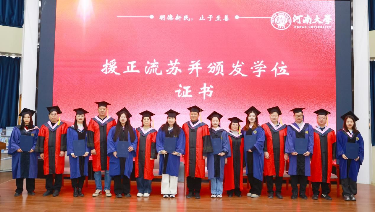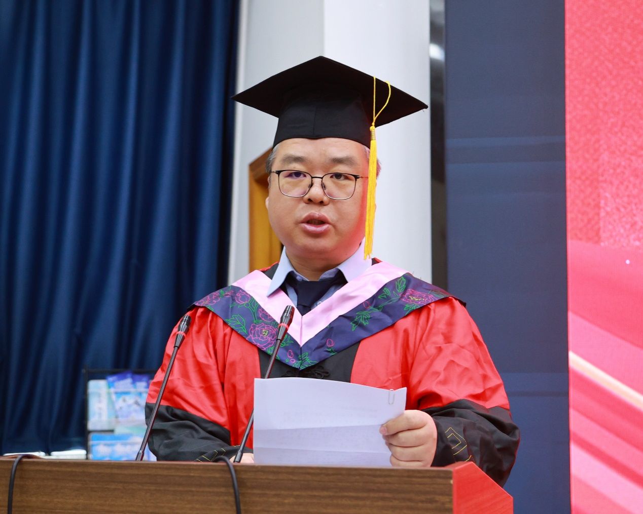 典礼在雄浑激昂的国歌声中正式启幕。河南大学公共管理硕士专业学位评定分委员会委员、副院长刘辉宣读了《河南大学2025届公共管理硕士专业学位授予决定》。