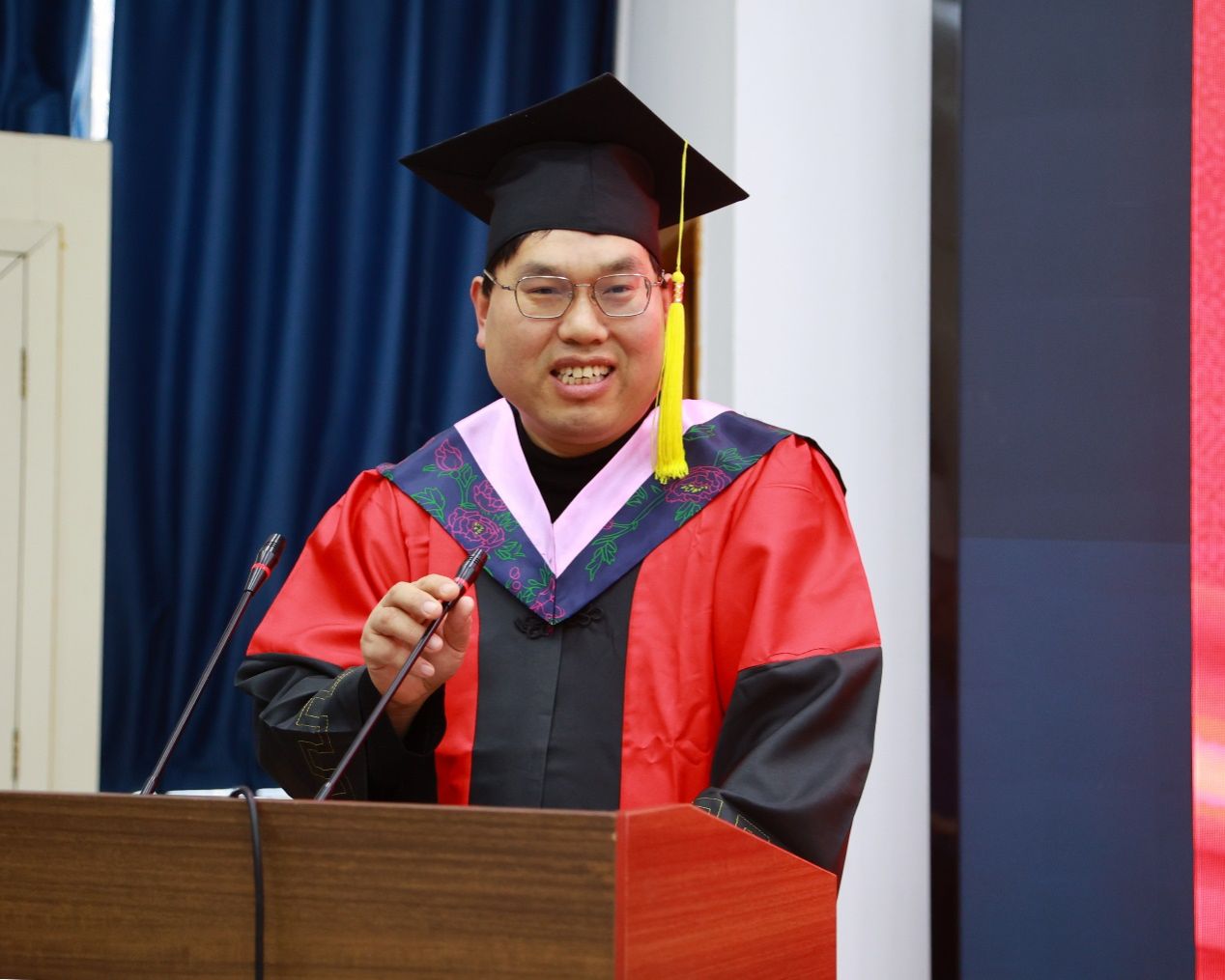 万水千山路,今朝复启程长。MPA毕业生代表毕玉帅发言,他感谢母校、spbo即时比分live 领导、导师的培育及同窗、家人和同事的支持,分享了“不摆烂”“不内耗”“不执念”的成长感悟与同窗共勉,表态将铭记“明德新民,止于至善”的校训,在岗位上践行使命、服务社会;