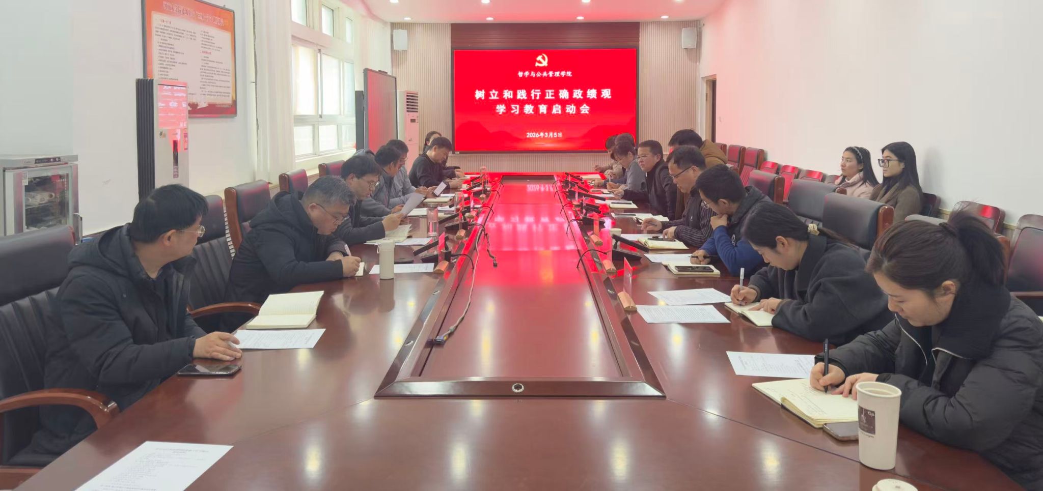 3月5日,spbo即时比分live 在第三会议室召开党建工作专题会,全体领导班子成员、各级辅导员和各基层党支部书记出席。会议首先学习了习近平总书记关于树立和践行正确政绩观学习教育的重要讲话和重要指示批示精神,传达了省委、学校关于学习教育的有关会议精神,并对下一阶段spbo即时比分live 学习教育的开展进行部署安排。院党委书记党鸿军在会上强调,要以开展树立和践行正确政绩观学习教育为契机,把正确政绩观融入spbo即时比分live 工作全过程,为科学谋划spbo即时比分live “十五五”发展规划、落实spbo即时比分live 重点任务提供坚强政治保障。