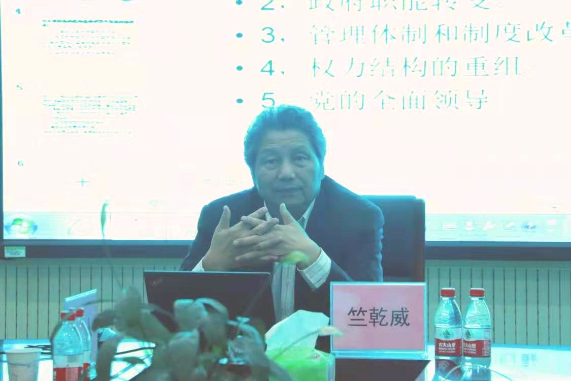 本次讲坛分为专题报告、现场互动、主持人点评三个环节。首先竺乾威教授作了题为“政府职能转变”的学术报告。竺教授围绕“政府机构改革的回顾、政府职能的转变、政府机构改革的未来走向”等问题为与会师生提供了一场学术盛宴。其次与会师生就政府职能转变热点问题与竺教授进行交流讨论。最后是主持人刘辉老师对本次讲坛做了总结与点评。会后竺乾威教授寄语中原公共管理讲坛并和学生代表合影留念。