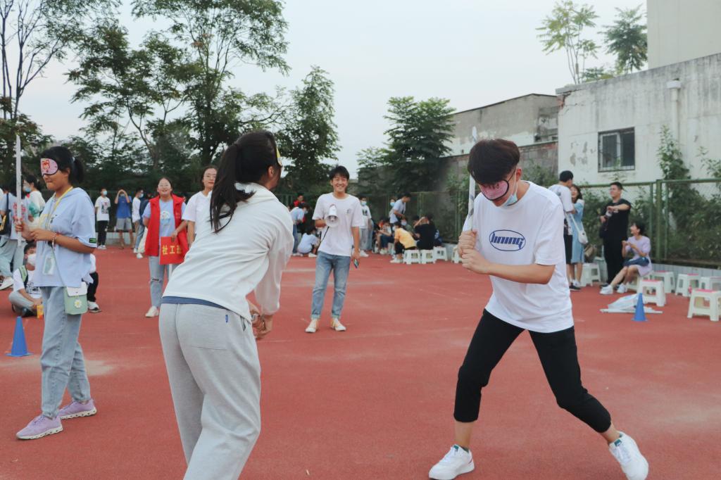 初识,是陌生的笑脸;再见,是紧握的双手。破冰活动在金明校区东操场进行,2020级辅导员王振光在强调“安全第一”的同时,鼓励新生放下拘束,享受时光,团结一致,共同奋斗。活动分为“3v3蒙眼互打”、“扔水瓶”、“记名字”、“掷沙包”等游戏。挥舞的纸棒敲断的是彼此的陌生;扔出的水瓶砸碎的是短暂的无言;喊出的名字敲响的是心动的信号;投掷的沙包划出的是微笑的弧线。每位同学在游戏中展现自我,在互动中消除不适,欢呼声、笑声、掌声交织一起,奏响spbo即时比分live