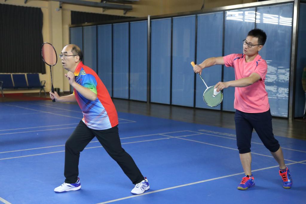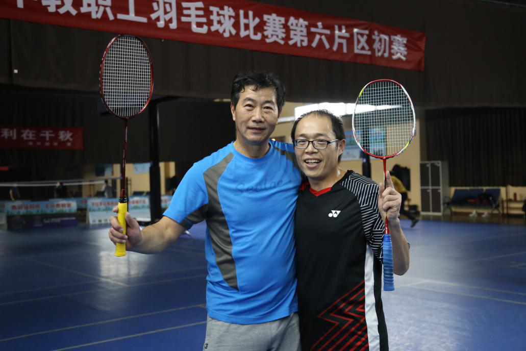 男双的竞争也十分激烈。抢攻、加速、下压,打点准确,咄咄逼人,老师们的飒爽英姿引来场下其他老师的阵阵欢呼。