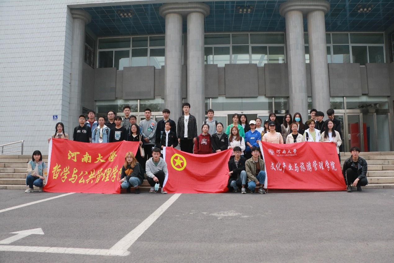 活动分为“复游校园,重温历史”、“党史校史共结合,不忘初心向未来”和“文旅哲管畅言辞,共习初心强信念”三个部分。在“复游校园,重温历史”中,导游余继涛带领同学们游览校园主要建筑,中西合璧的斋房、庄重典雅的大礼堂、独具苏式风格的九号楼,校园矗立着的每一座建筑,都在岁月中见证着河大历史的变迁。随后同学们来到校史馆,重温校史。河大悠久的历史是一部艰苦办学的历史,无论是在抗日战争时期几经流转依然坚持治学,传播文明火种,还是在建国后折枝成林,河大始终坚守发展文化的重任,为中国教育事业做出自己的贡献。“明德新民,止于至善”一直是河大人的至高追求。