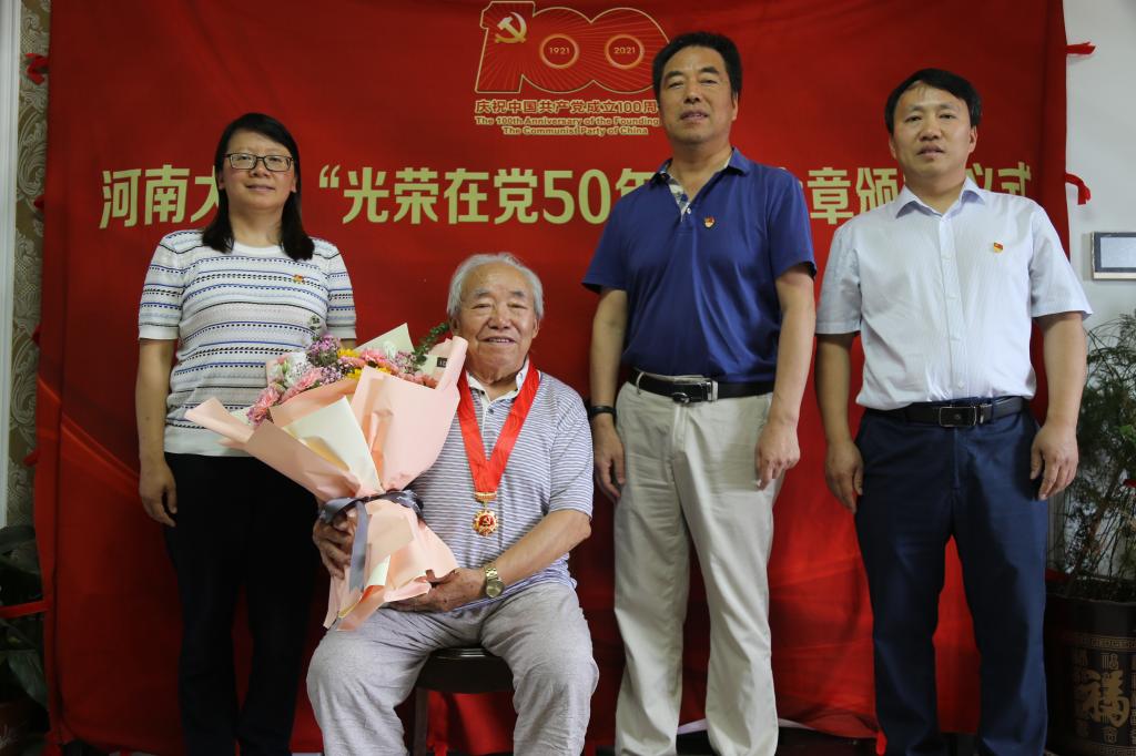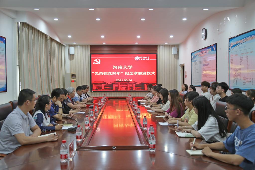 学科建设和发展所做的贡献表示感谢。她表示,老党员的奋斗历程和光辉事迹给大家树立了榜样,是我们学习党史、用好党史的宝贵资源和财富。她鼓励青年党员向老党员学习,学习他们的崇高品格和奉献精神,爱党爱国,实学实干,在新时代新征程中书写河大人与党同心,勇担使命新篇章。