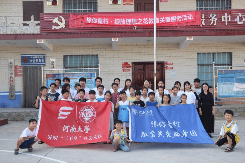 “豫你童行”暑期“三下乡”社会实践团于焦作市温县徐堡南街村,面向当地留守儿童群体开展系列教育关爱服务活动。此次社会实践以“理想教育”为主题,通过丰富多彩的课程活动激发留守儿童的学习兴趣,以期达到理想启蒙的作用。