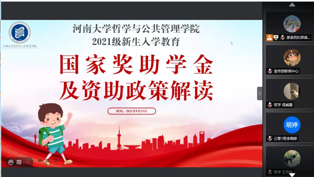 漫漫求学路,悠悠助学情。资助政策宣传教育是新生入学教育的重要一课,此次线上宣讲会的开展,不仅使新生了解到国家和学校的资助政策,进一步发挥资助工作的育人功能,也为新生提供了一个与老生交流、了解大学生活、适应人生新阶段的平台。这将有助于他们树立高远理想,明确人生目标,脚踏实地,不断坚定信仰,求精搏进,争做新时代的有志青年。