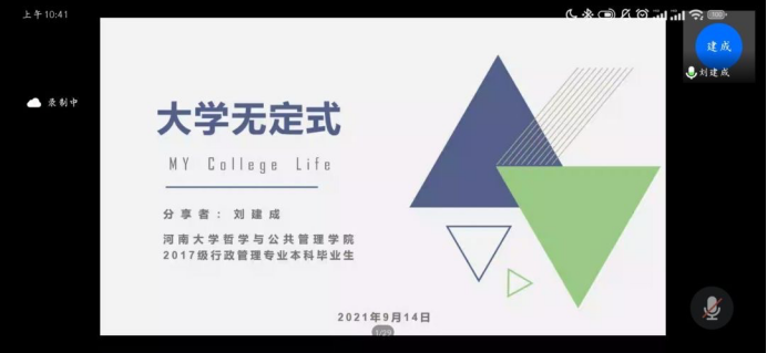 举行“我的大学”线上分享会。四位优秀毕业生代表与全体2021级新生参加本次分享会。
