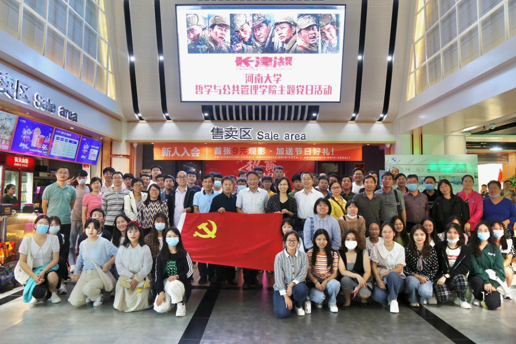 组织教师党员、学生党员及入党积极分子代表百余人开展主题党日活动,集中观看电影《长津湖》。