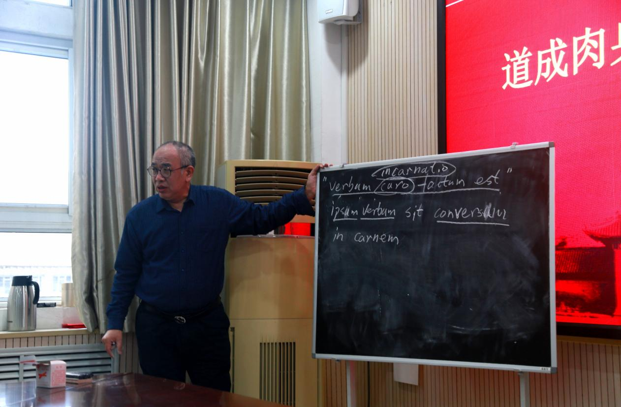 第二会议室作了题为《道成肉身的语言哲学意义》的学术讲座。此次讲座由院长姬志闯教授主持,哲学专业研究生参加了本次讲座。