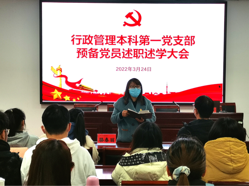 第三会议室召开预备党员述职述学大会。党支部书记骆春丽、本科2019级辅导员孙少飞和支部27名党员参加会议。