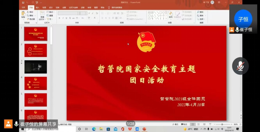 各团支部在对国家安全知识教育相关音视频文字等资料收集后,由团支书带领团员从总体国家安全观出发进行了深入学习,促使全体团员青年坚持底线思维,树牢国家安全意识,坚守意识形态阵地,认识到维护国家安全是每个公民应尽的责任与义务,在思想上提升团员青年对国家安全的重视程度。