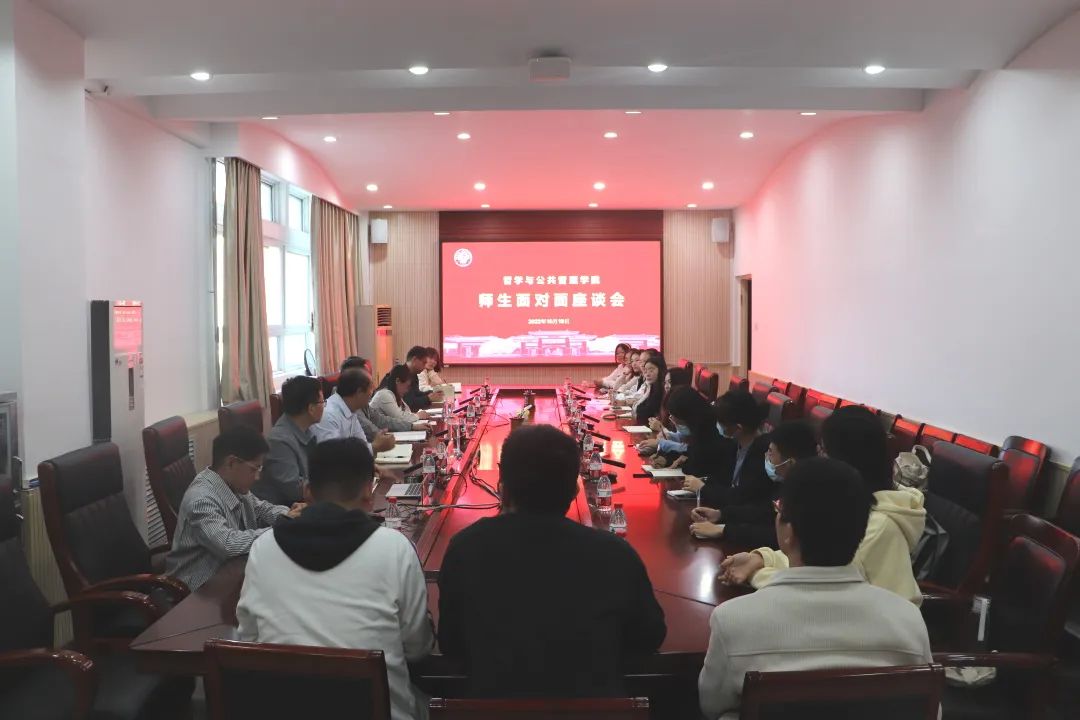 第二会议室举行师生面对面座谈会。院党委书记党鸿军、党委副书记骆春丽、副院长田丰韶、副院长齐月祥、2022级本科生辅导员王天宇、研究生辅导员刘耀与16位本科生、研究生新生亲切交谈,了解同学们入学一个月以来的学习、生活情况。