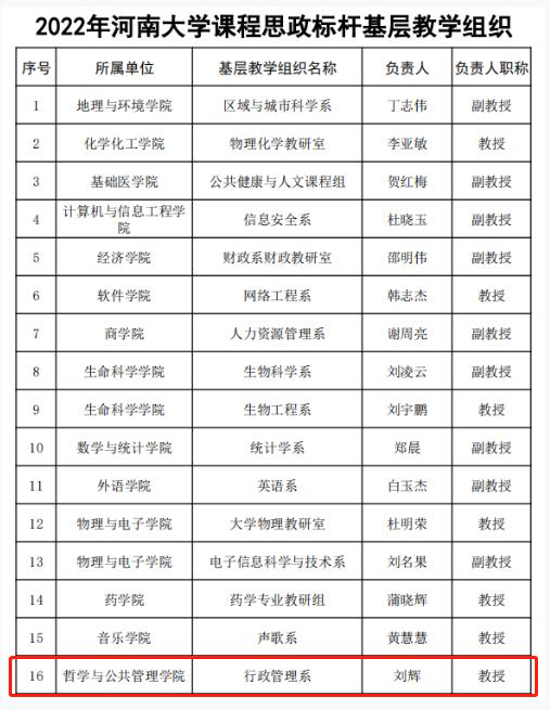 ”、行政管理系获批“河南大学课程思政标杆基层教学组织”。