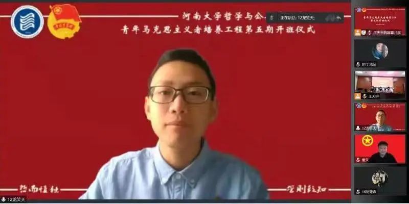 青年马克思主义者培养工程第五期培训班开班仪式于第一会议室举行。校团委副书记董文、院党委副书记骆春丽、院党委办公室主任贾银兰出席会议,培训班全体学员以线上的形式参会。仪式由院团委副书记王天宇主持。