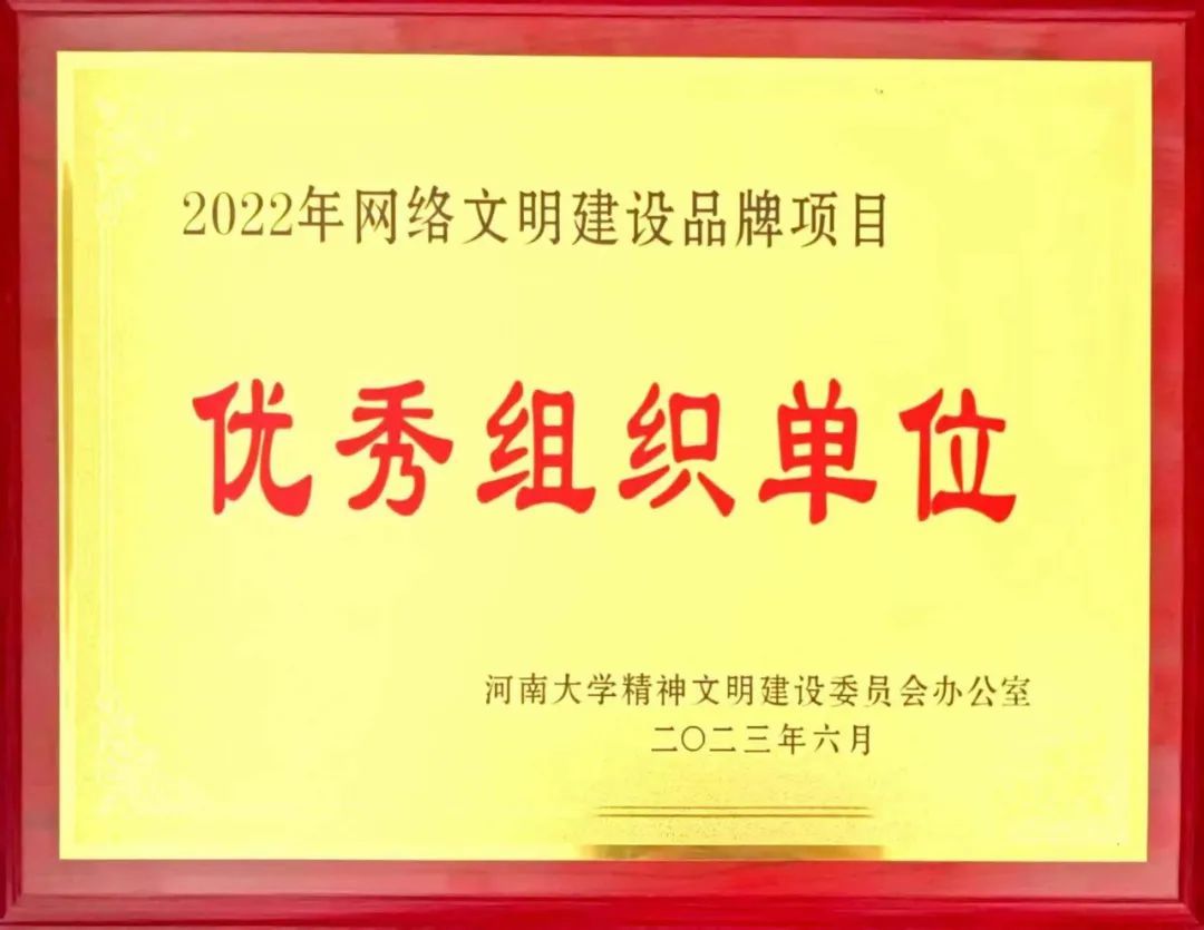 在此次表彰中荣获“2022年网络文明建设品牌项目优秀组织单位”称号。