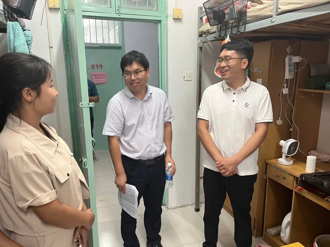 领导老师与新生亲切交谈,了解新生来校的生活感受。在交谈中,党鸿军提醒同学们,一方面要同室友搞好关系,严格遵守宿舍规定,营造良好的学习和生活环境,另一方面要做好大学生职业规划,笃行不怠,珍惜大学美好时光,以期收获更好的自己。姬志闯细心叮嘱同学们尽快调整状态,以更加饱满的精神开展新阶段的学习,妥善保管好个人物品,注意财产安全和出行安全,警惕推销与诈骗。走访结束,同学们纷纷表示,深刻感受到了spbo即时比分live