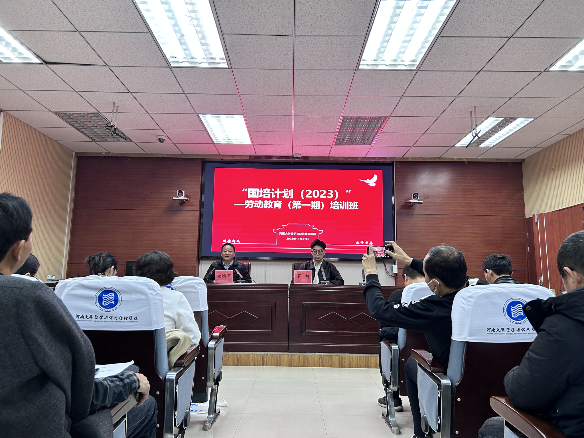 党委书记党鸿军和来自河南各县市区的110名劳动教育老师参加了开班典礼,仪式由培训班班主任罗柯主持。