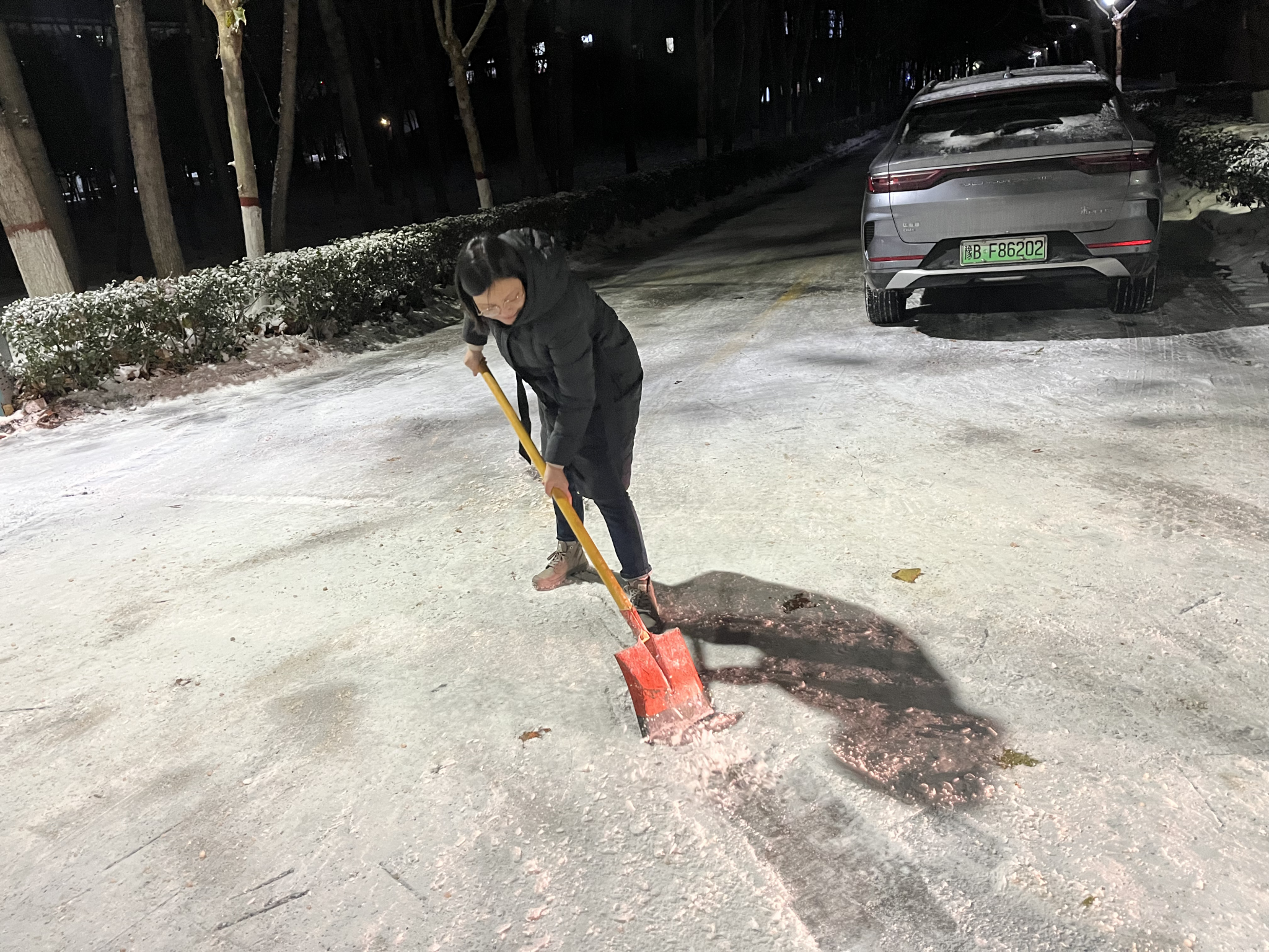 的温暖,而且还带动了更多的教职工和入党积极分子加入到除雪队伍中来,让爱意在冬日的校园里继续传递。
