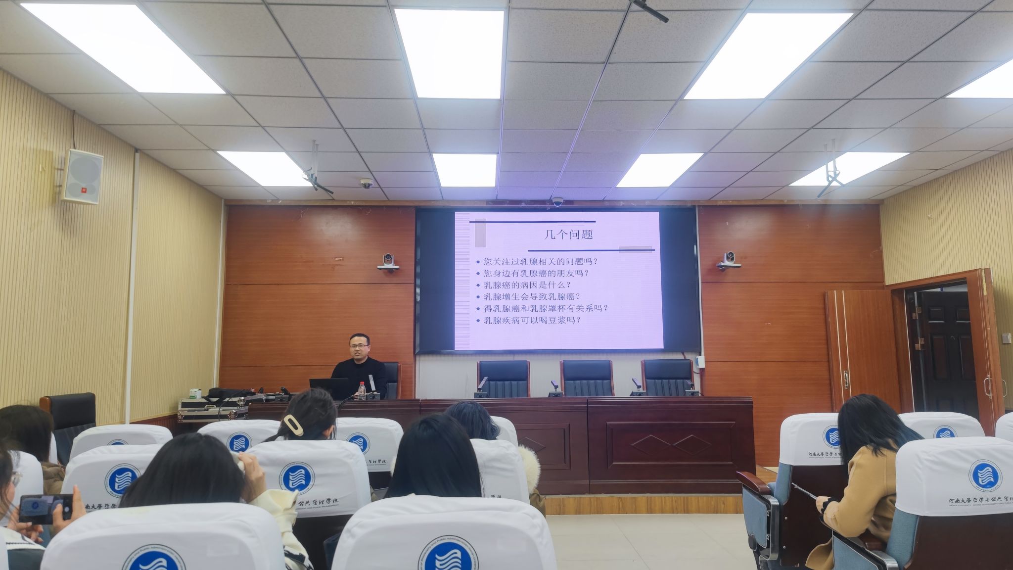 本次讲座邀请了三位专家进行主题演讲。开封市中心医院乳腺甲状腺外科副主任医师焦东晓从“呵护乳腺,绽放美丽”方面深度解读乳腺健康的重要性,介绍乳腺保健知识,引导教职工正确对待乳腺健康问题。妇产科副主任医师陈晨从实际案例出发,深入浅出地讲解“绝经期管理整体观”,并提出科学全面的管理观念,帮助女性科学、合理保持身心健康。呼吸与危重症医学科主治医师杜德森以肺部健康为主题,通俗易懂地介绍了肺结节的相关知识,呼吁大家对肺病风险时刻关注,及时发现,迅速处理。
