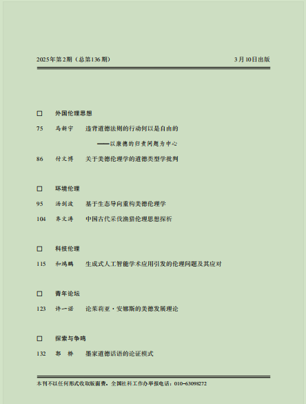哲学系郭桥教授在《伦理学研究》2025年第2期发表论文“墨家道德话语的论证模式”。