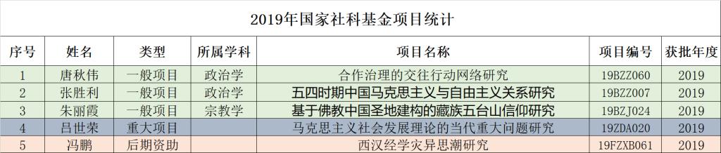 2019年新增国家社会科学基金项目