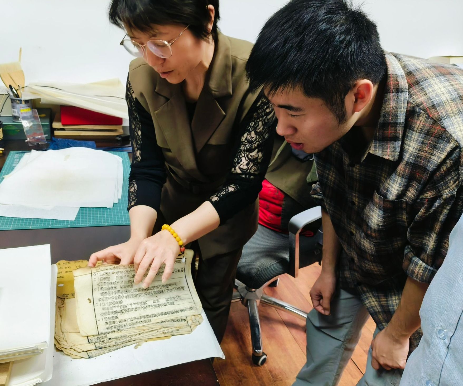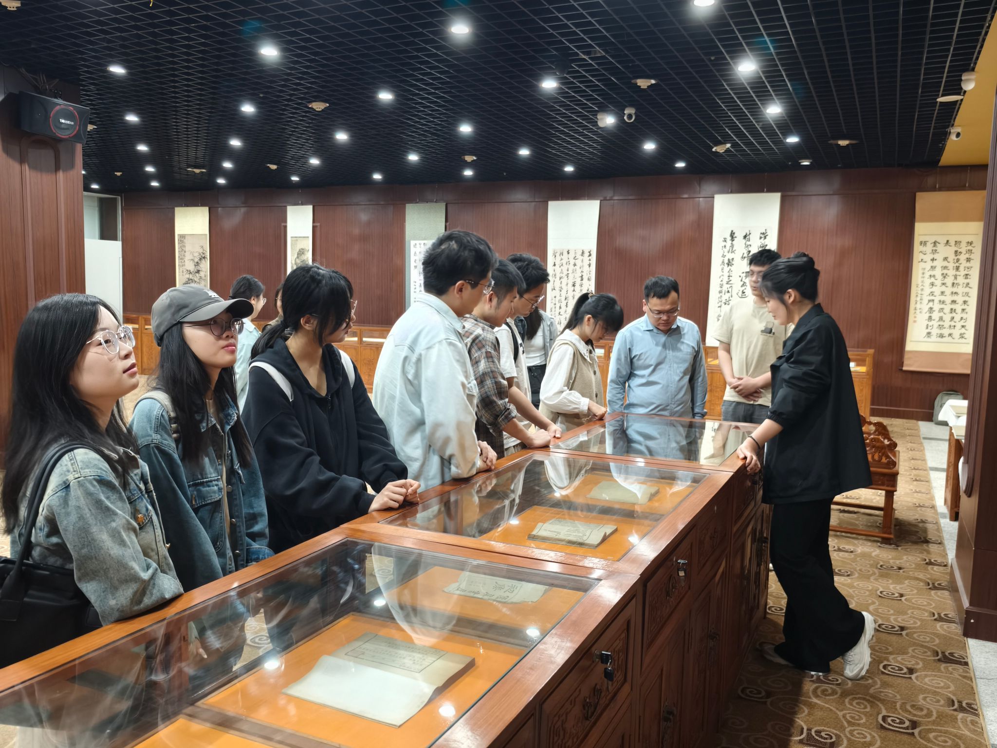 师生介绍了图书馆珍藏室的概况,并就特藏古籍、字画生动地向同学们介绍了珍藏室的藏品由来及文物价值,让大家更深入地了解了学校的历史和文化。接着,同学们来到了古籍修复室,谢蕴老师不仅介绍了古籍修复所需的各种工具,如细针、镊子、纸张等,还详细讲解了修复过程中的每一个步骤,包括如何去除污渍、如何补缺、如何装订等。同学们听得津津有味,对这门古老而精细的技艺充满了敬意。谢老师还展示了一些修复完成的古籍和一些正在修复的书页,让同学们亲眼见证了古籍修复的神奇过程,它们虽然历经沧桑,但经过修复师的修复,又重新焕发出光彩,同学们被这些古籍的精美和修复师的匠心独运所深深吸引。最后,谢老师为同学们耐心解答了关于古籍修复和文献研究的各种问题。