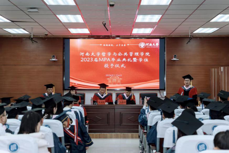 伴随着庄严肃穆的国歌声,毕业典礼正式拉开帷幕。河南大学公共管理硕士专业学位评定分委员会委员、副院长田丰韶宣读《河南大学2023届公共管理硕士专业学位授予决定》。
