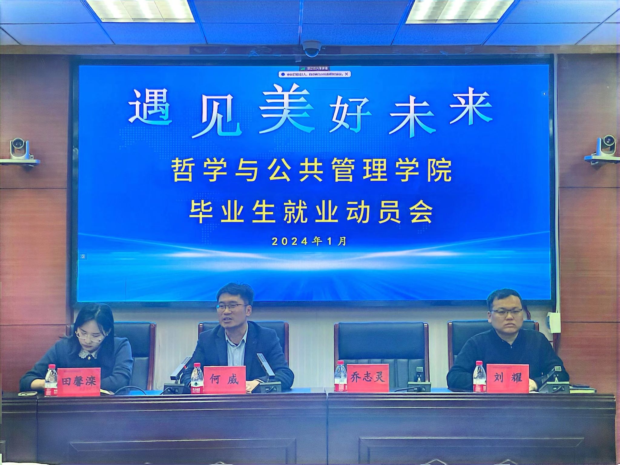 会议开始,何威结合当今社会发展特点和自身多年学生工作经验,认为新就业观、新渠道、新本领和新精神是实现成功就业的四个关键要素。他勉励同学们树立多元就业观,敢于尝试不同就业的职业道路,在不断学习中提升自身技能,以“文能提笔安天下,武能上马定乾坤”的精神风貌勇攀梦想之巅。