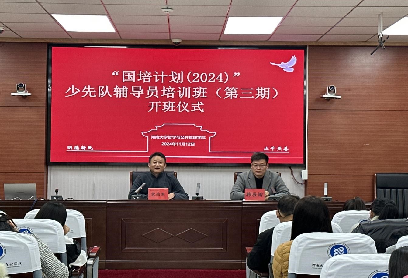 党委书记党鸿军、 继续教育与培训中心主任韩辰锴和来自三门峡、信阳、周口、驻马店等地的94名少先队辅导员参加了开班仪式,仪式由韩辰锴主持。